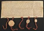 Albert arcybiskup ryski H Herman prepozyt M przeor oraz kapituła ryska zawierają zgodę z mistrzem Ludwikiem i Zakonem Krzyżackim diecezji ryskiej co do podziału spornych do tej pory ziem czynszów dziesięcin i praw kilkunastu grodów w Zelonii Kuronii i Semigalii