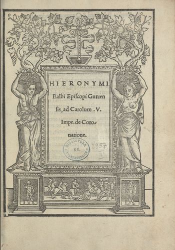 Strona tytułowa ksylograficzna - całostronnicowy drzeworyt figuralno-roślinny..