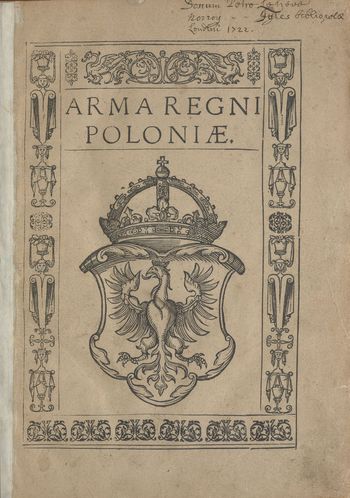 Na karcie tytułowej drzeworyt z przedstawieniem orła w koronie, na pozostałych kartach drzeworyty herbów ziem polskich oraz herby rodów szlacheckich.