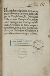 Z Biblioteki Puławskiey XX. Czartoryskich [pieczęć na stronie tytułowej].