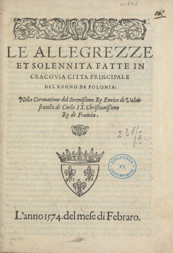 Tyt. nagł.: L'ordine tenuto nell'intrata del Serenissimo Re in la citta di Cracovia
