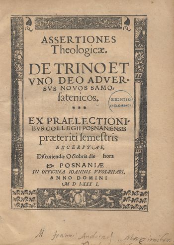 "Joanni Andreass Margim..?" nieodczytana zapisana na stronie tytułowej.