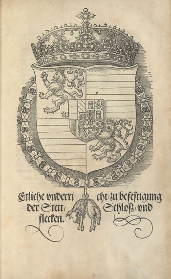 Etliche underricht, zu befestigung der Stett, Schloss, und Flecken. - (Gedrückt zu Nürenberg : [wydawca nieznany], 1527). - [26] kart, sygnowanie A-B⁴, C⁶, D⁵, E⁴, F² (powtórzona k. A⁴) : ilustracje ; 2°.