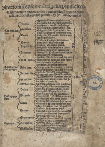 W kolofonie: Finit expositio Guillermi super euangelia & dominicaru[m] & sanctorum per anni circulu[m] [...] Anno millesimo quingentesimo decimooctauo [...].