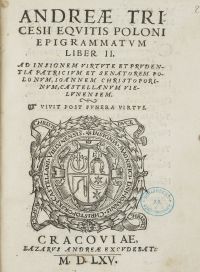 Na stronie tytułowej drzeworyt: tarcza czteropolowa w wieńcu laurowym z herbami: Nowina, Pobóg, Oksza, Drzewica, wokół napis: Insignia. Magnifici. Dni. Ioanuis. Christoporski. Castellani. Vilvnensis dodano po 1 karcie ochronnej na początku i końcu druku.