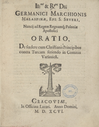 Data na stronie tytułowej: Anno Domini, M. D. XCVI.