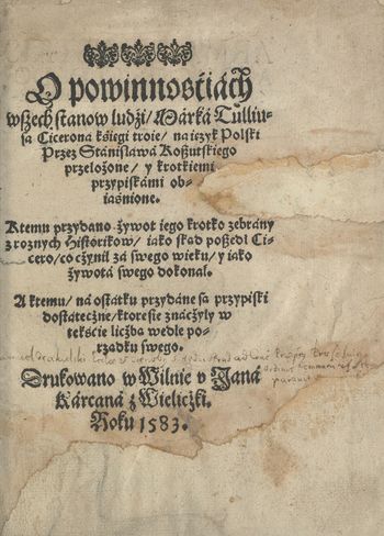 Na karcie tytułowej v. herb Jana Chodkiewicza.