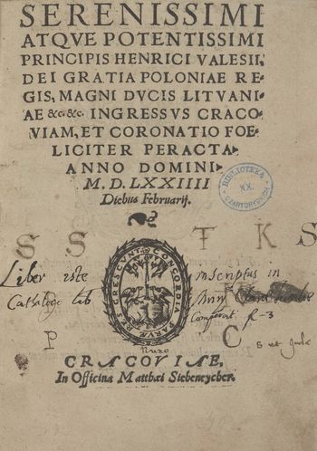 Henrici Valesii Poloniae regis ingressus Cracoviam et coronatio peracta anno 1574 diebus Februarii.