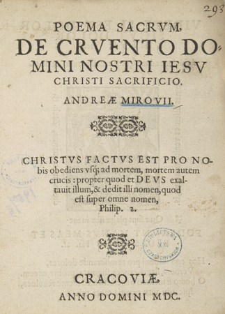 Na stronie tytułowej: "MDC" Karty paginowane ręcznie (strony nieparzyste) 293-313.