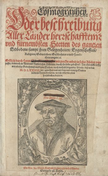 Cosmographey oder Beschreibung Aller Laender herzschafftems und fürnembsten Stetten des gantzen Erdbodens sampt ihren Gelegenheiten, Engenschafften, Religion, Gebzeüchen, Geschichten unnd Sandthierungen / Erstlich durch Herrn Sebastian Munster. - Getruckt zu Basel : in der Officin Henricpetrina, [1578]. - [12] kart, XXVI kart(podwójne), MCCCCXIIII stron, [1] karta, sygnowanie a⁶,a⁶,[1-26]²,A-E⁸,F⁶,G²,H⁴,I-O²,P⁴,Q⁸,R⁴,S²,T-X⁸, Y⁴,Z²,Aa²,Bb⁸,Cc⁴,Dd⁶,Ee⁴,Ff-Ii²,Kk⁶,Ll-Mm⁸,Nn-Oo², Pp-Yy⁸,Zz⁴,AA⁴,BB-CC⁸,DD⁶,EE²,FF-GG⁴,HH⁶,II⁸,KK⁶,LL-MM⁸, NN⁴,OO-PP²,QQ⁴,RR²,SS⁴,TT-ZZ²,AAa⁸,BBbU2.
