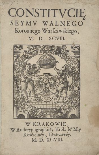 Współwyd.: Vniwersal poborowy na seymie walnym koronnym warszawskim w roku Pańskim M.D.XC osmym vchwalony, (12 k. (s. [1], 2-23 [24]), sygn.: AA⁴, BB⁶).