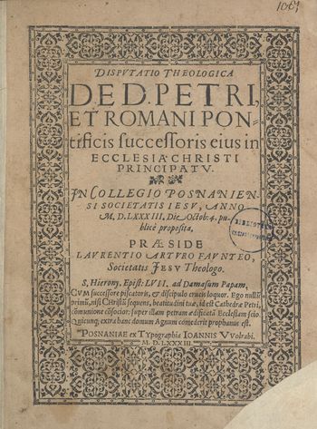 Drzeworyt z herbem Jezuitów na k. tyt. verso
