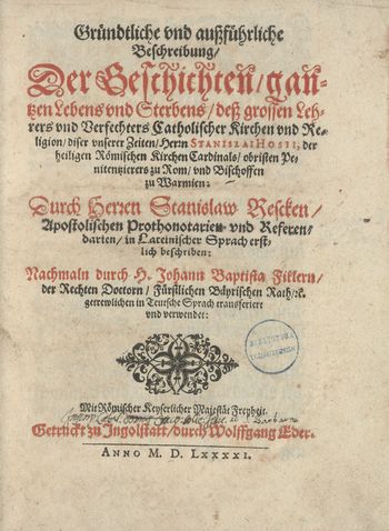 Na stronie tytułowej: Anno M. D. LxxxxI.
