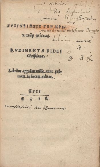 Druk wykazuje duże podobieństwo czcionki z "Euangelia, quibus diebus dominicis utitur ecclesia, Græce., Vratislauiæ. : Ex officina And. Vuingleri., M. D. XLIII.". [i.e. Wrocław, Ex officina Andreas Winkler, 1543].