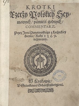 Na odwrocie karty tytułowej herb Poraj - Macieja Żalińskiego.