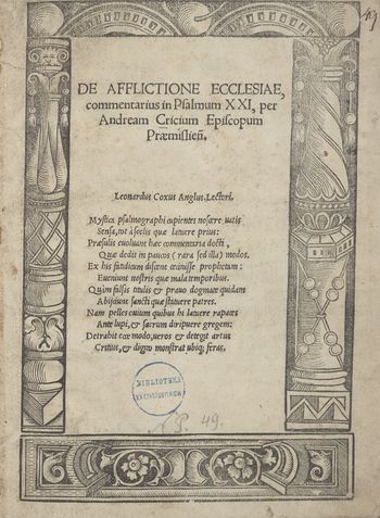 "Z Biblioteki Puławskiey XX. Czartoryskich" [pieczęć na karcie tytułowej verso].