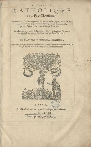 Dedykacja: "A Tres-illustre Prince & Reuerendissime Cardinal, Monseignevr Le Cardinal De Bourbon [podp.] Iean De Lavardin".