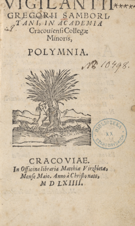 "Ornatissimo viro Domino Paulo Hectori,civi Cracoviensi,Polymniam musam Commendat" [notka na karcie tytułowej verso]