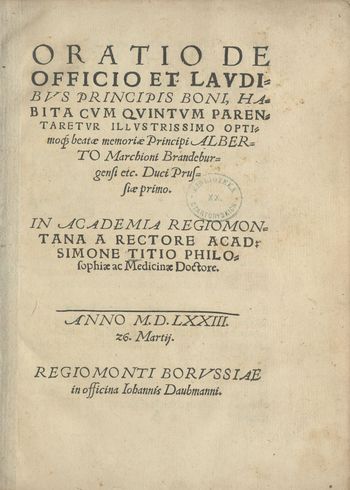 Na druku: Anno M.D.LXXIII. 26. Martij.