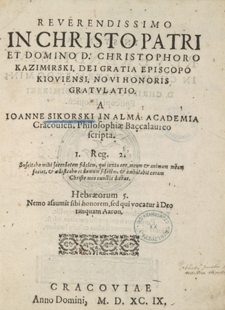 Na stronie tytułowej: "Anno Domini, M. D. XC.IX.".