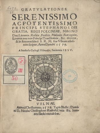 Zawiera poezję okolicznościową różnych autorów, studentów Akademii Wileńskiej, dedykowaną Stefanowi Batoremu.