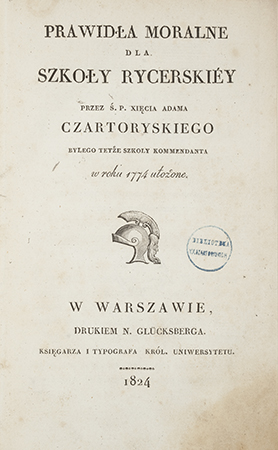 Dod. s. tyt.: Zbiór pism tyczących się moralney edukacyi wychowania Szkoły Rycerskiey