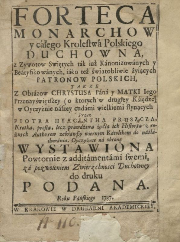 Na odwr. s. tyt. staloryt przedstawiający modlącego się św. Jana Kantego.