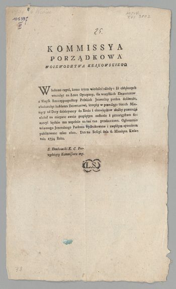 Tyt. nagł.: Kommissya Porządkowa Woiewodztwa Krakowskiego