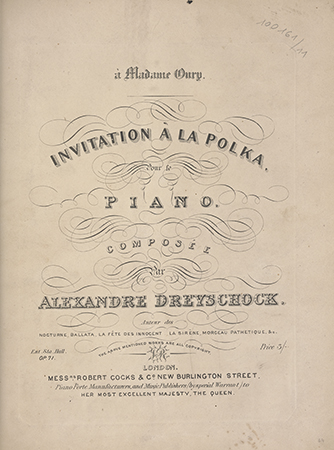 Na stronie tytułowej nazwy innych utworów Dreyschocka, na ostatniej stronie nutowej ogłoszenie wydawcy.