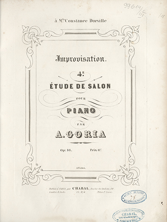 Na stronie 1: "Catalogue des Ouvrages de Piano composés par A. Goria, publiés à Paris chez Chabal".