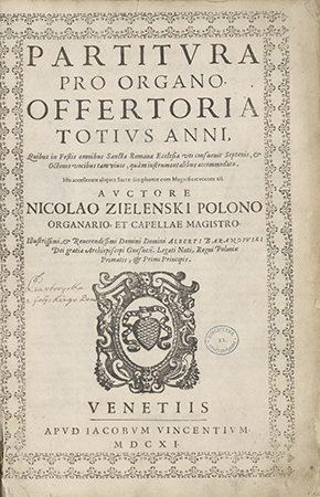 Współwyd. z własną stroną tyt.: Commvniones Totivs Anni, Quibus in Solennioribus Festis Sanctae Romanae Ecclesiae uti consuevit ad Cantum Organi per vnam, duas, tres, quattuor, quinque, et sex voces tum Instrumentis Musicalibus, et vocis resolutione, quam Itali Gorgia vocant, decantandae. His accesserunt aliquot Simphoniae quattuor, quinque, et sex vocum, et tres Fantasiae Instrumentis Musicalibus accommodatae / Auctore Nicolao Zielenski Polono Organario et Capellae Magistro Illustrissimi, et Reverendissimi Domini Domini Alberti Baranowski Dei gratia Archiepiscopi Gnesneñ. Legati, Nati Regni Poloniae Primatis, Primi Principis. ( k. F²-K⁶).