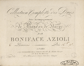 Strona tytułowa w języku francuskim, teksty duetów w języku włoskim.
