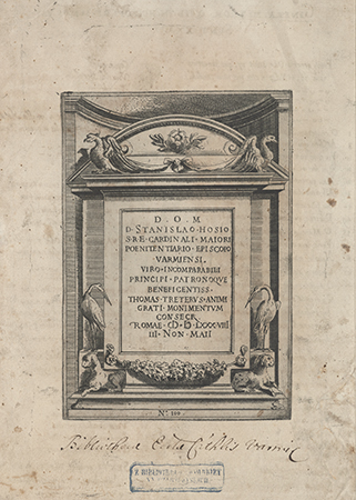 Theatrum virtutum Stanislai Hosii cardinalis. - (Roma, 1588). - 200 stron, [2] karty ochronne : ilustracje ; 34 x 25 cm.