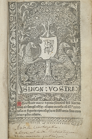 Hore beate marie virginis secundum usum Romanum [...]. - Paris : Vostre Simon, [około1510]. - [140] k., sygnowanie a-c⁸, d⁴, e-p⁸, a⁸, e⁸, i⁸ : ilustracje ; 8° (9x13x3 cm).
