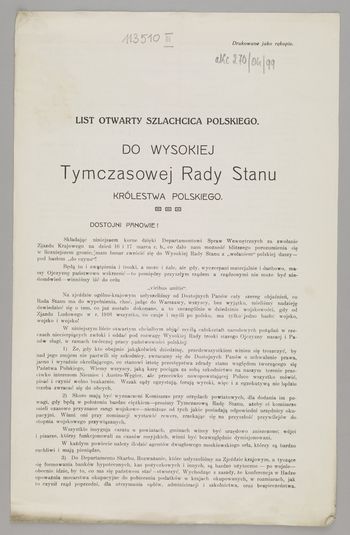 Apel do Rady Stanu o zdecydowane działania w celu stworzenia polskiego wojska.