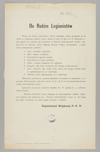 Incipit: Wzywa się ochotników z Ziemi Lubelskiej, którzy zaciągnęli się ...