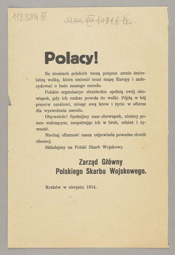 Apel o ofiarność na rzecz formującego się wojska polskiego.