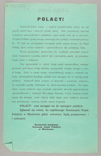 Polacy! - [Miejsce nieznane] : [wydawca nieznany] [1914]. - [1] karta (1 strona) ; 35x22 cm.