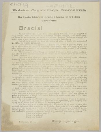 Odezwa wzywająca do niewstępowania do wojska rosyjskiego lecz do tworzącego się wojska polskiego.