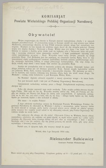 Data na druku: Wieluń, dnia 1-go listopada 1914 roku.