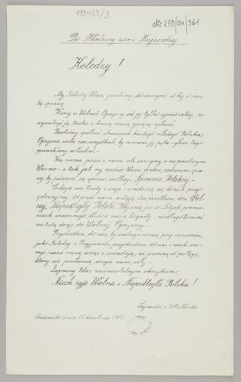 Wezwanie do wstępowania w szeregi Legionów Polskich.