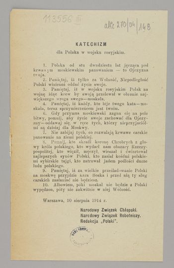 Data na druku: Warszawa, 10 sierpnia 1914 r.