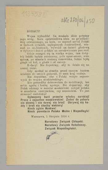 Data na druku: Warszawa. 1 Sierpnia 1914 r.