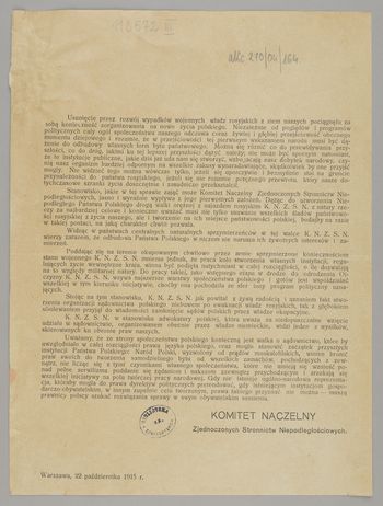 Data pod tekstem: Warszawa, 22 października 1915 r.