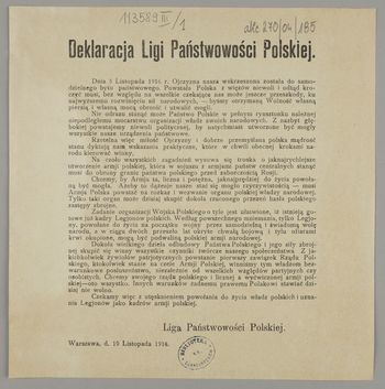 Incipit: Dnia 5 Listopada 1916 r. Ojczyzna nasza wskrzeszona została ...