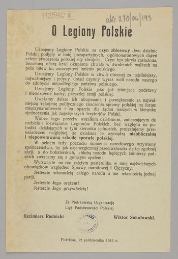 Incipit: Uznajemy Legiony Polskie za czyn zbiorowy [...]