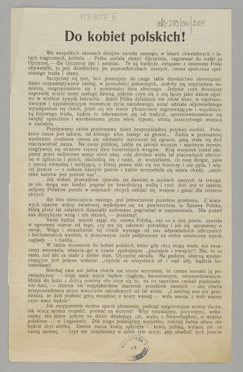 Odezwa patriotyczna i wezwanie do pomocy na rzecz żołnierzy walczących o wolność i ich rodzinom.