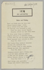 Boże coś Polskę : 1830 29 Listopad. - [Płock? : wydawca nieznany], 1914 XI 29. - [1] karta (2 strony) ; 18x11 cm.