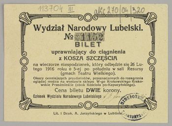 Nad tytułem: Wydział Narodowy Lubelski. Bilet Nr 1152.