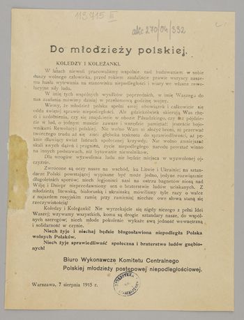 Data na druku: Warszawa, 7 sierpnia 1915 r.